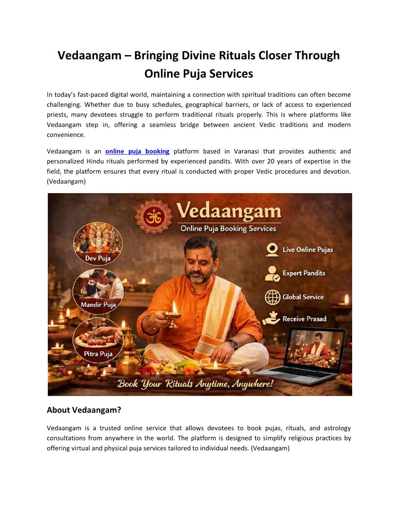 Vedaangam – Bringing Divine Rituals Closer Through Online Puja Booking Services