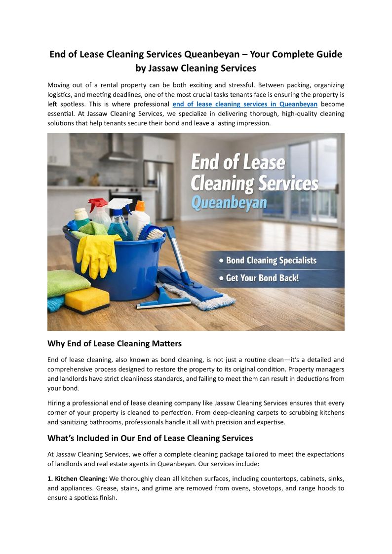 End of Lease Cleaning Services Queanbeyan – Your Complete Guide by Jassaw Cleaning Services