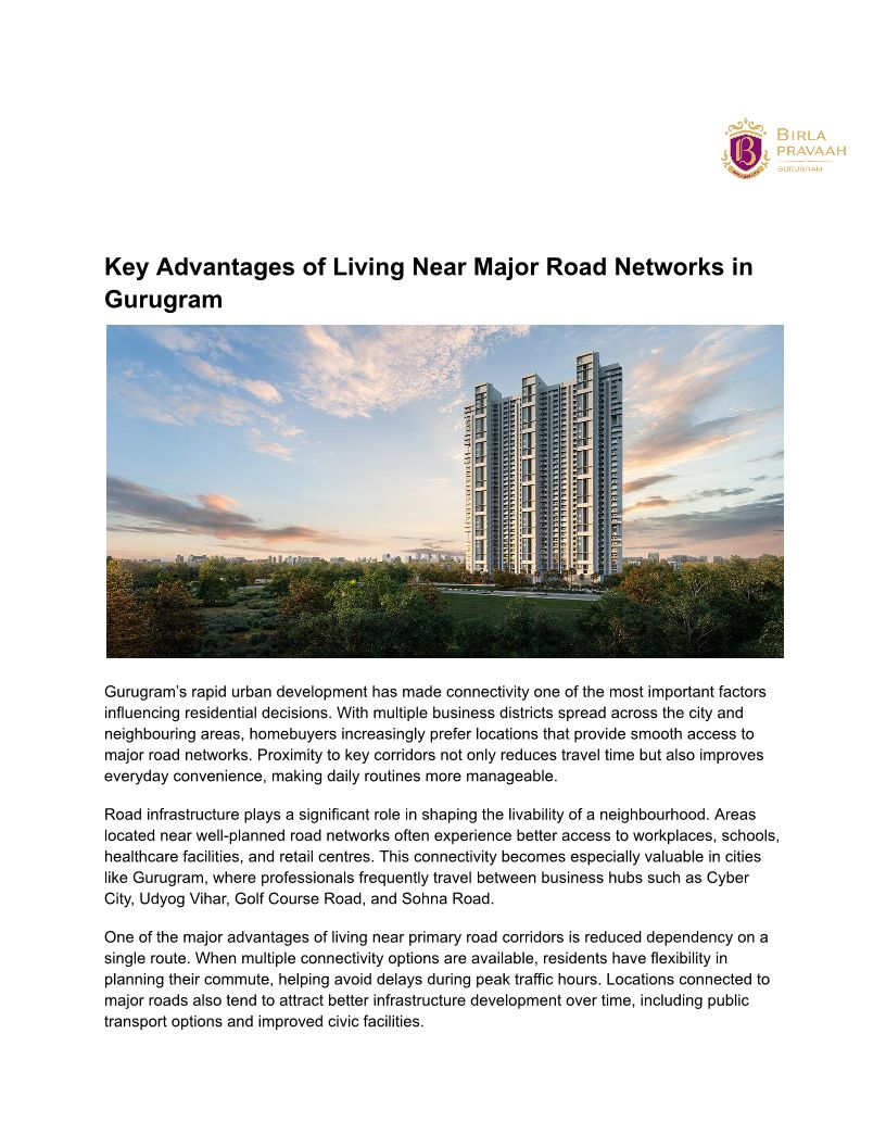 Key Advantages of Living Near Major Road Networks in Gurugram