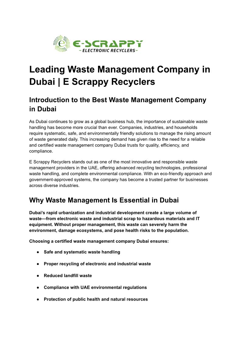 Leading Waste Management Company in Dubai _ E Scrappy Recyclers