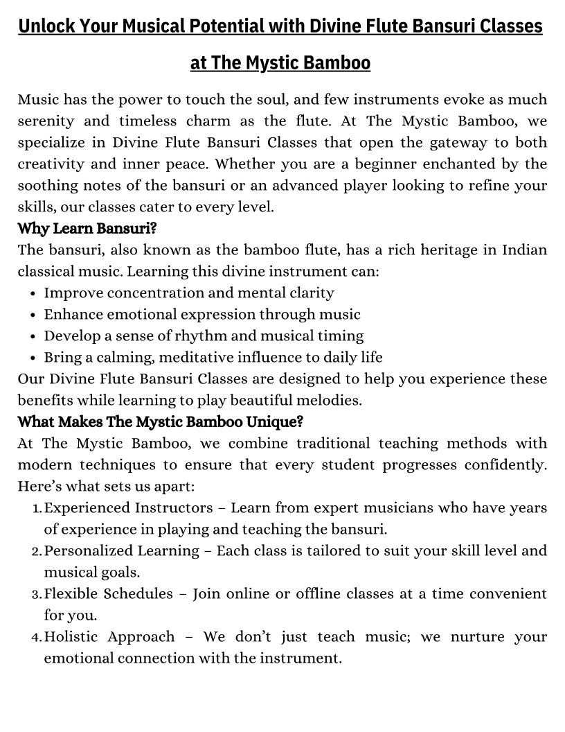 Unlock Your Musical Potential with Divine Flute Bansuri Classes at The Mystic Bamboo