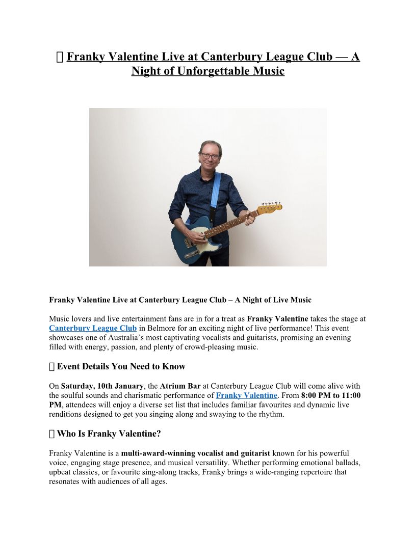 Experience Franky Valentine at Canterbury League Club Sydney