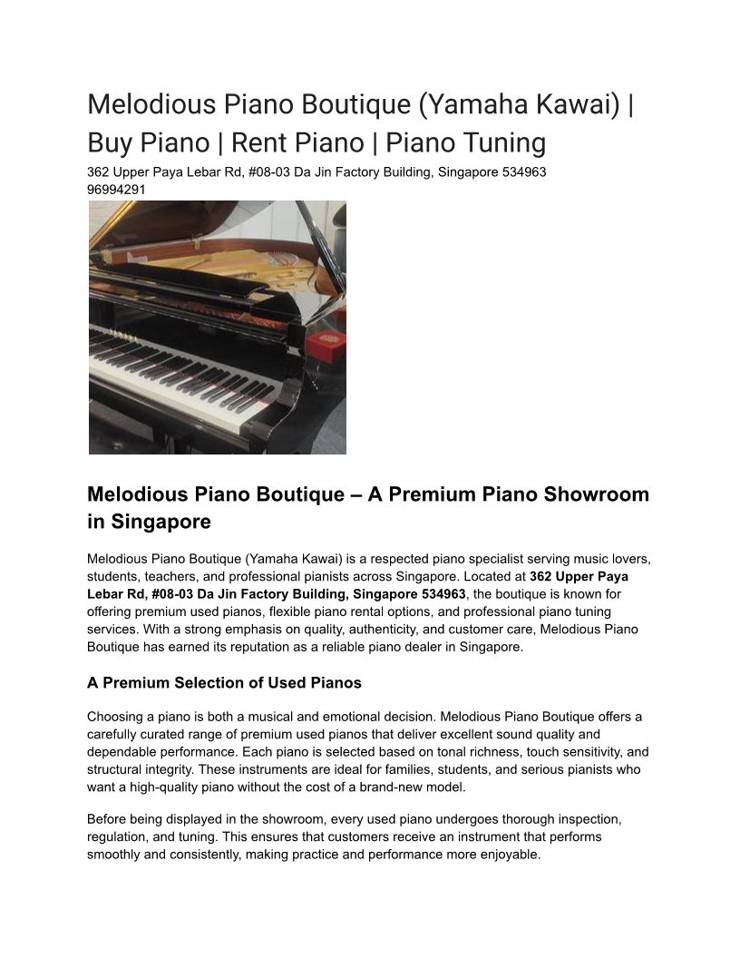 Melodious Piano Boutique – Supporting Beginners and Students with Quality Pianos in Singapore