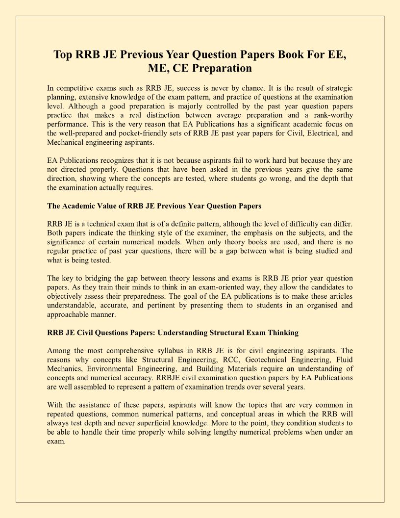 Top RRB JE Previous Year Question Papers Book For EE, ME, CE Preparation
