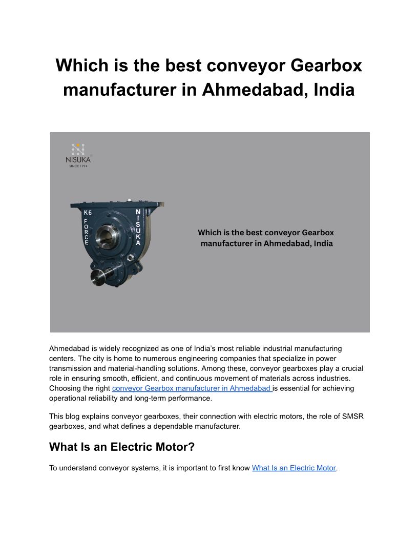 Which is the best conveyor Gearbox manufacturer in Ahmedabad, India