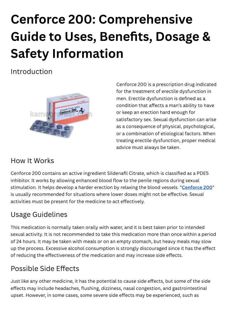 Cenforce 200 Comprehensive Guide to Uses, Benefits, Dosage & Safety Information