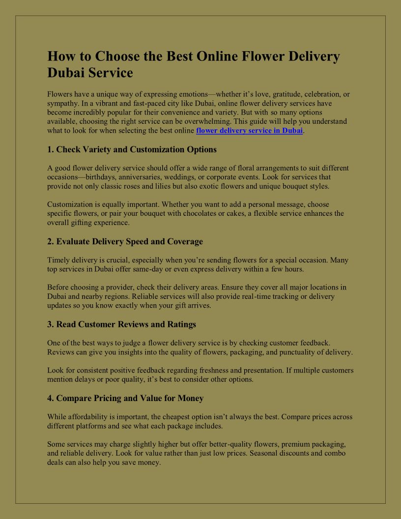 How to Choose the Best Online Flower Delivery Dubai Service