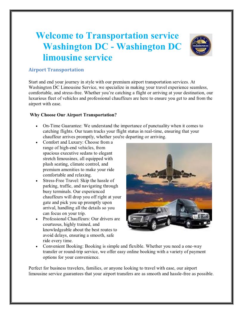 Transportation service Washington DC - Washington DC limousine service