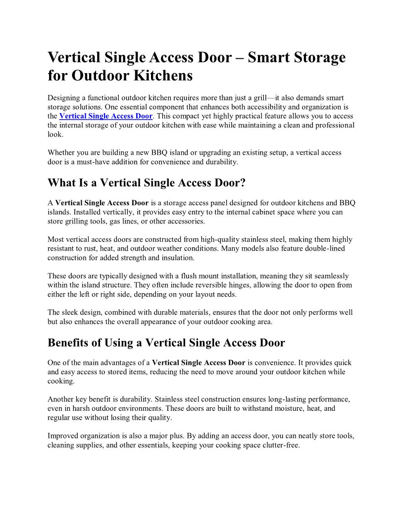 Vertical Single Access Door – Smart Storage for Outdoor Kitchens