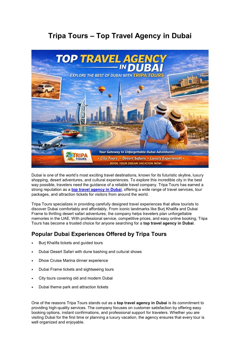 Why Tripa Tours is a Top Travel Agency In Dubai for Tourists