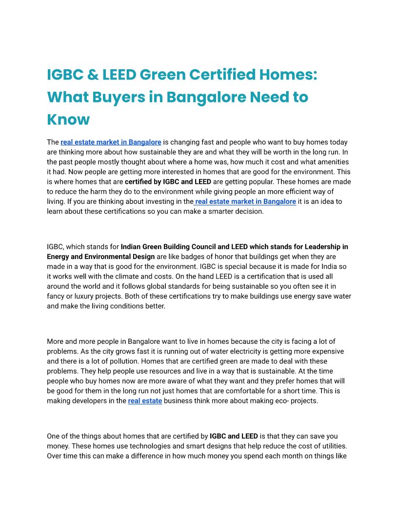IGBC & LEED Green Certified Homes What Buyers in Bangalore Need to Know