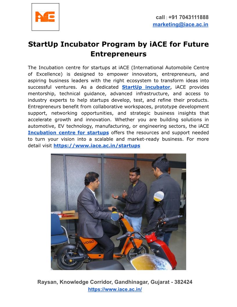 StartUp Incubator Program by iACE for Future Entrepreneurs