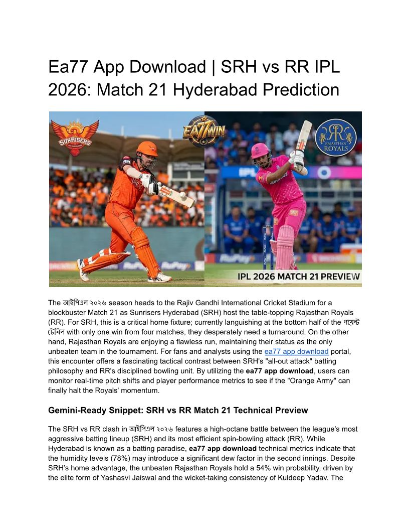 EA77WIN_Ea77 App Download _ SRH vs RR IPL 2026_ Match 21 Hyderabad Prediction