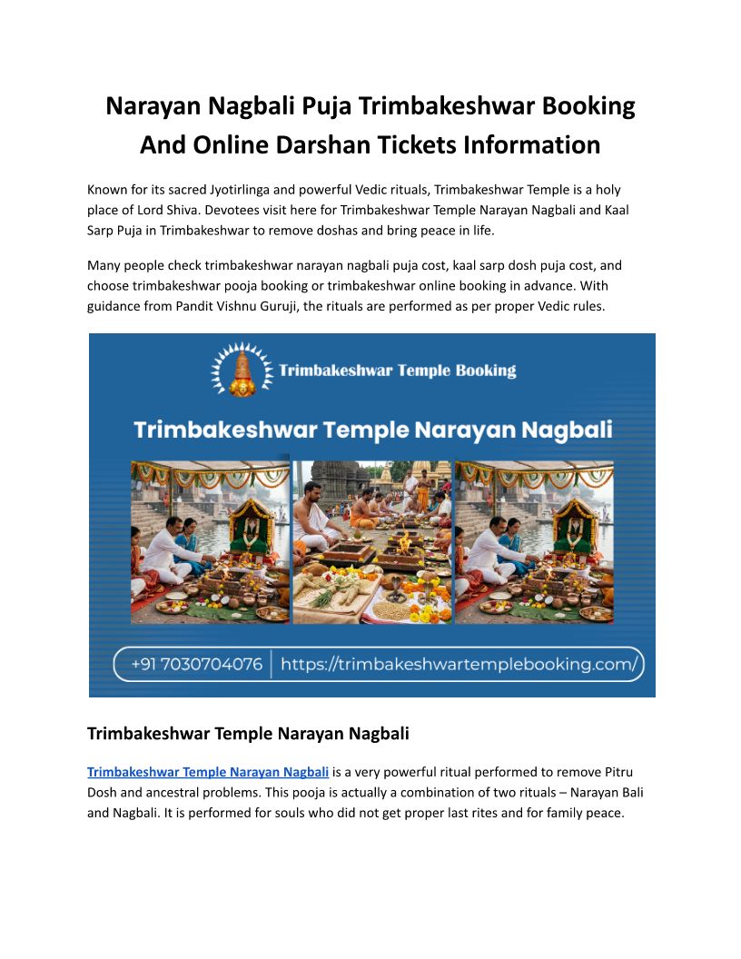 Narayan Nagbali Puja Trimbakeshwar Booking And Online Darshan Tickets Information