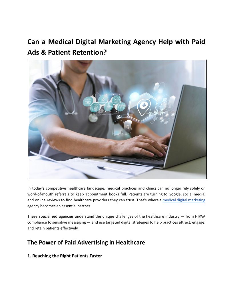 Can a Medical Digital Marketing Agency Help with Paid Ads & Patient Retention?