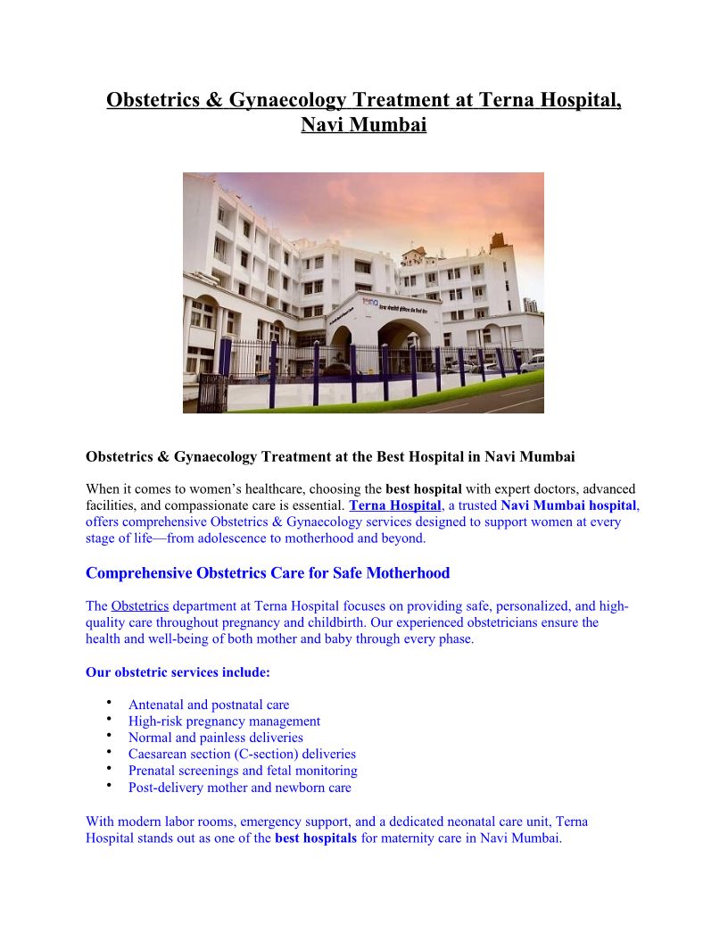 Best Hospital in Navi Mumbai for Obstetrics and Gynaecology Treatment