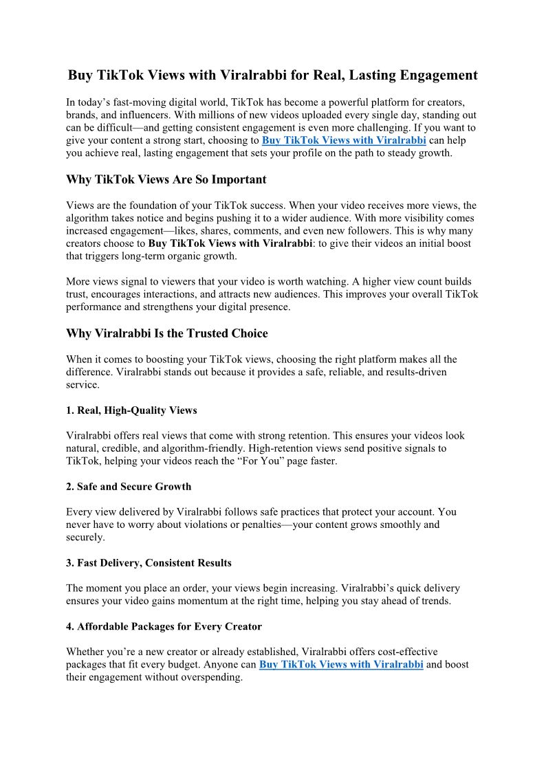 Buy TikTok Views with Viralrabbi for Real, Lasting Engagement