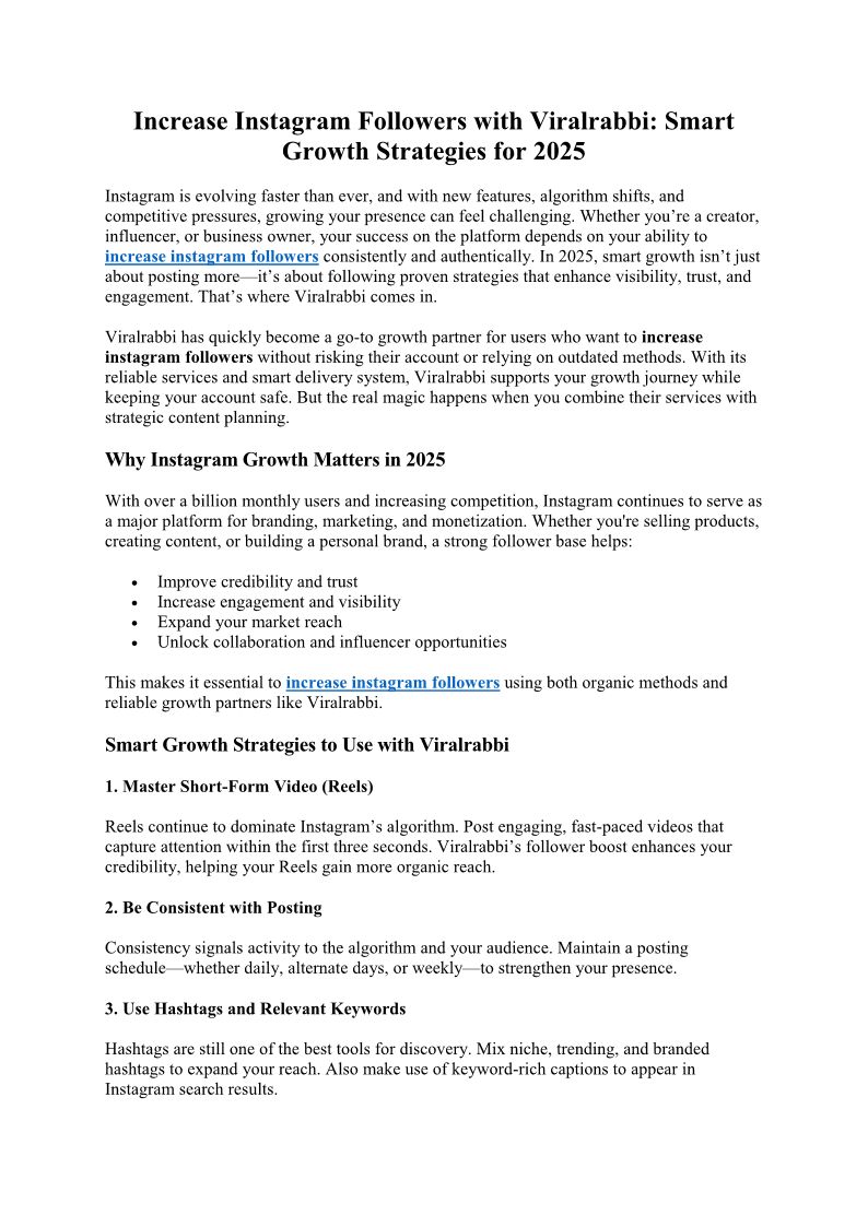 Increase Instagram Followers with Viralrabbi Smart Growth Strategies for 2025