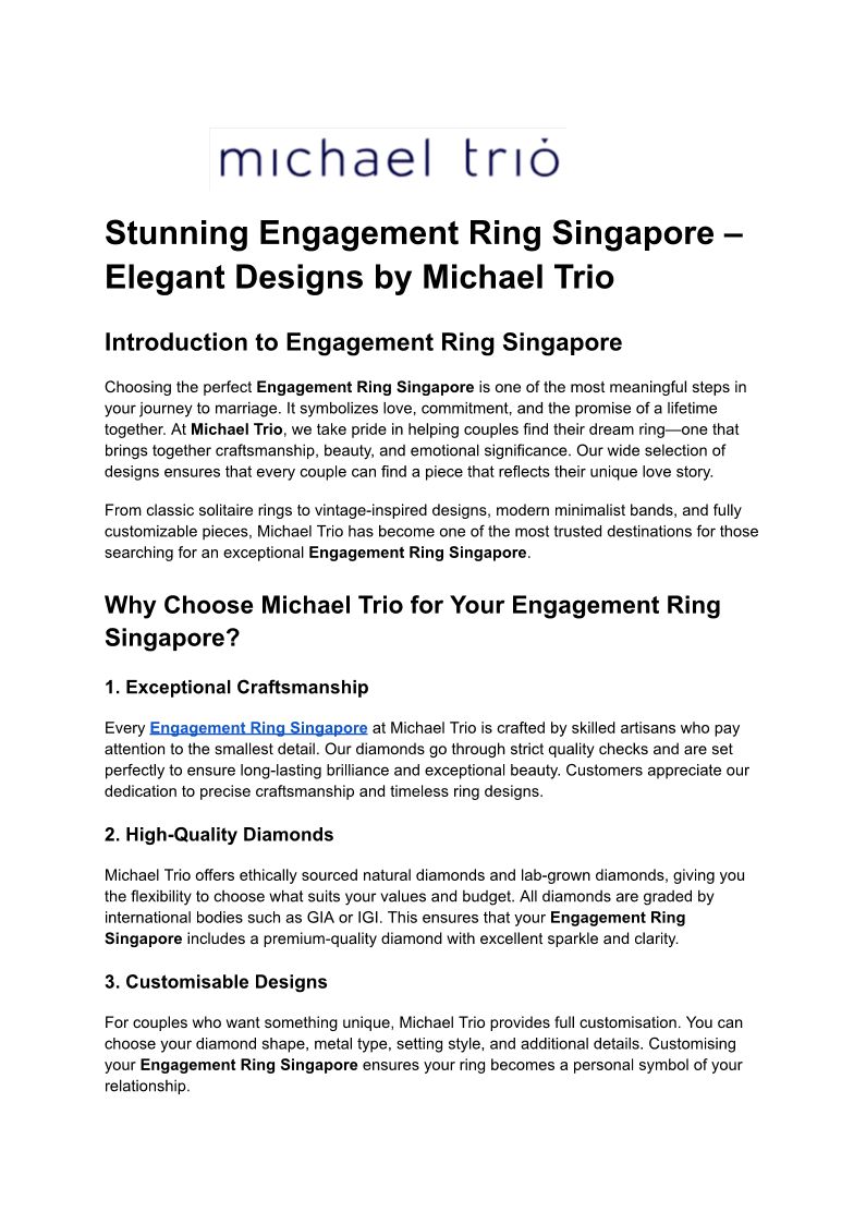 Stunning Engagement Ring Singapore – Elegant Designs by Michael Trio