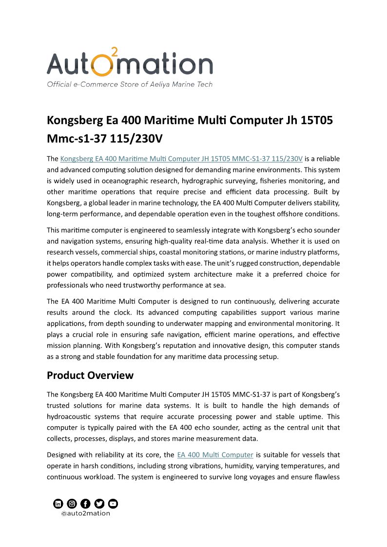 Kongsberg Ea 400 Maritime Multi Computer Jh 15T05 Mmc-s1-37 115 230V