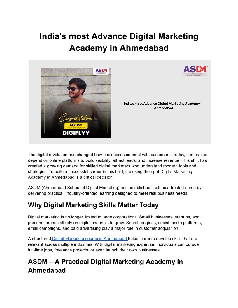 India's most Advance Digital Marketing Academy in Ahmedabad