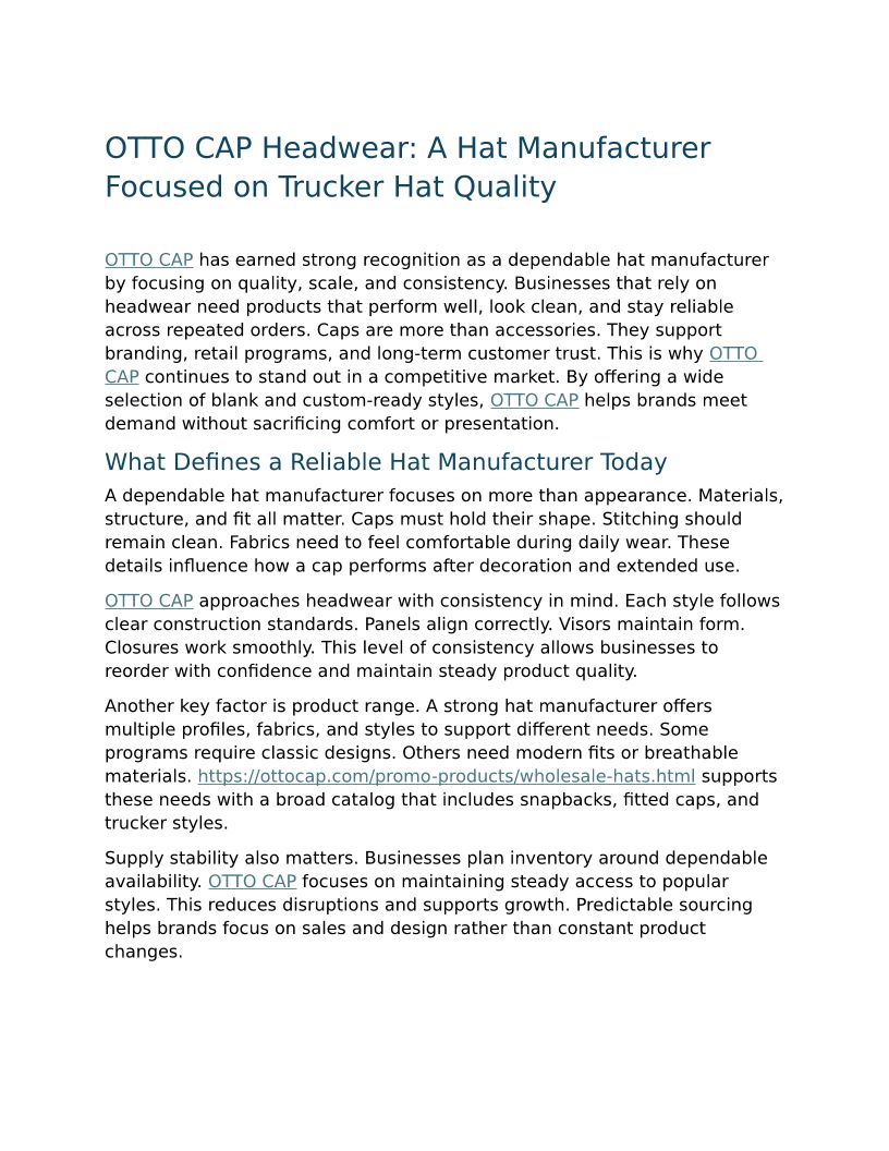 OTTO CAP Headwear: A Hat Manufacturer Focused on Trucker Hat Quality