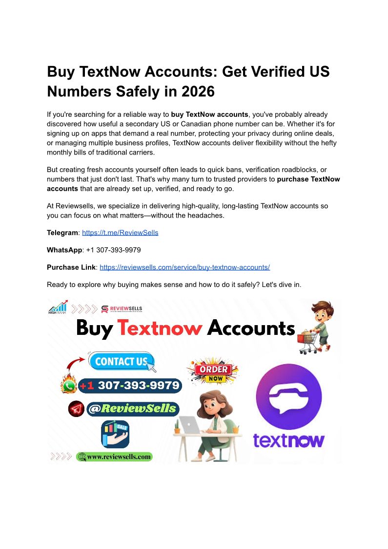 Buy TextNow Accounts - Verified & Cheap _ Reviewsells 2026