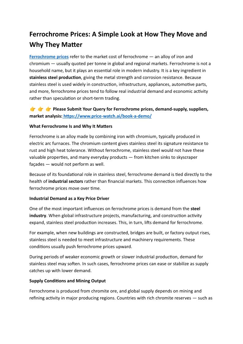 Ferrochrome Prices: A Simple Look at How They Move and Why They Matter