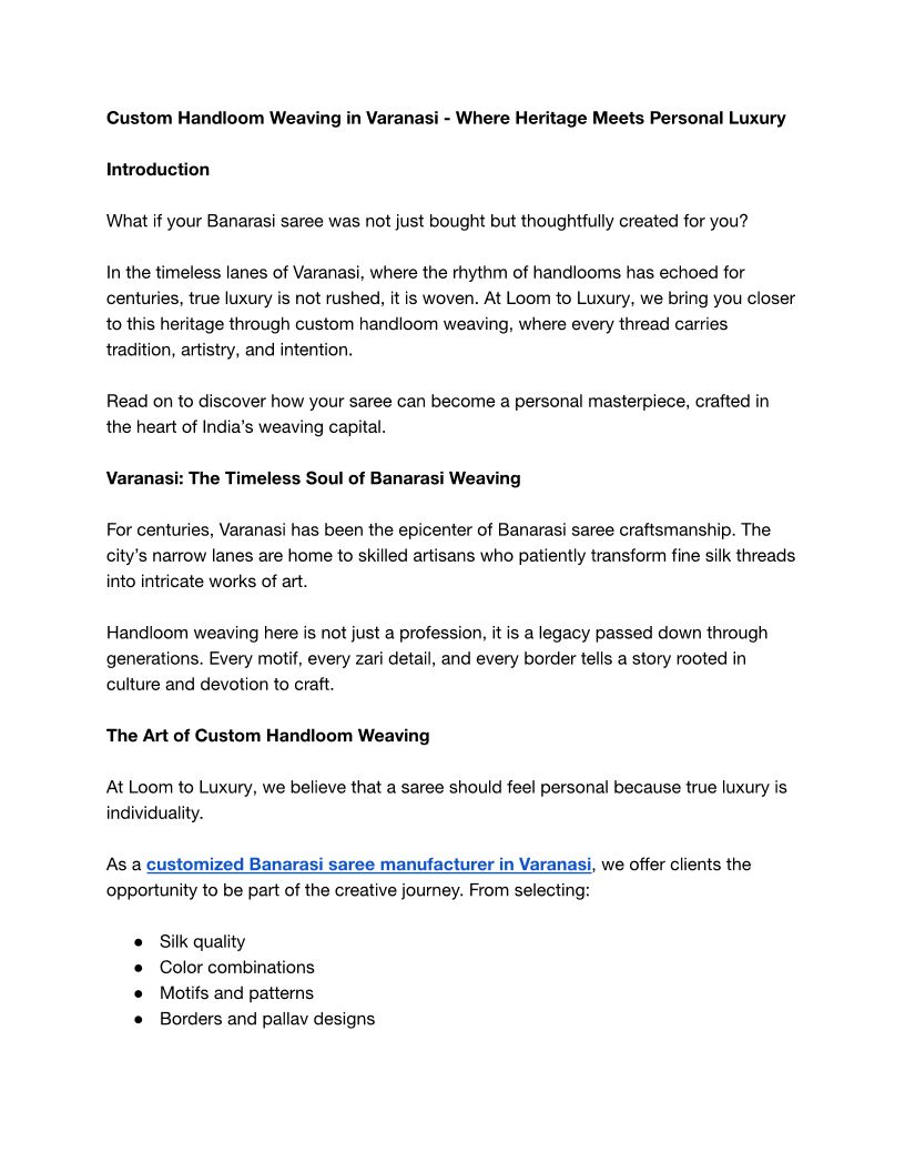 Custom Handloom Weaving in Varanasi_ Where Heritage Meets Personal Luxury
