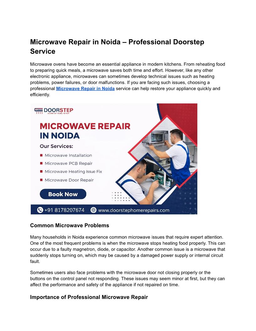 Microwave Repair in Noida – Professional Doorstep Service