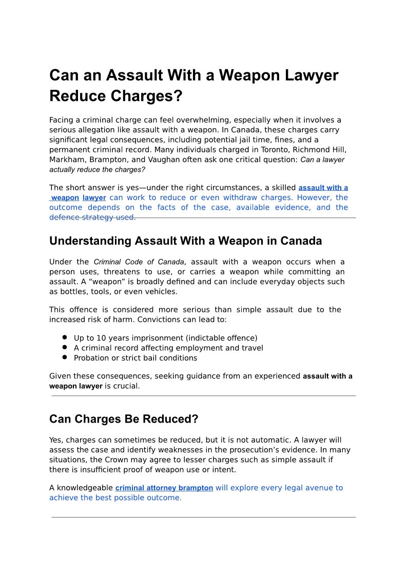 Can an Assault With a Weapon Lawyer Reduce Charges?