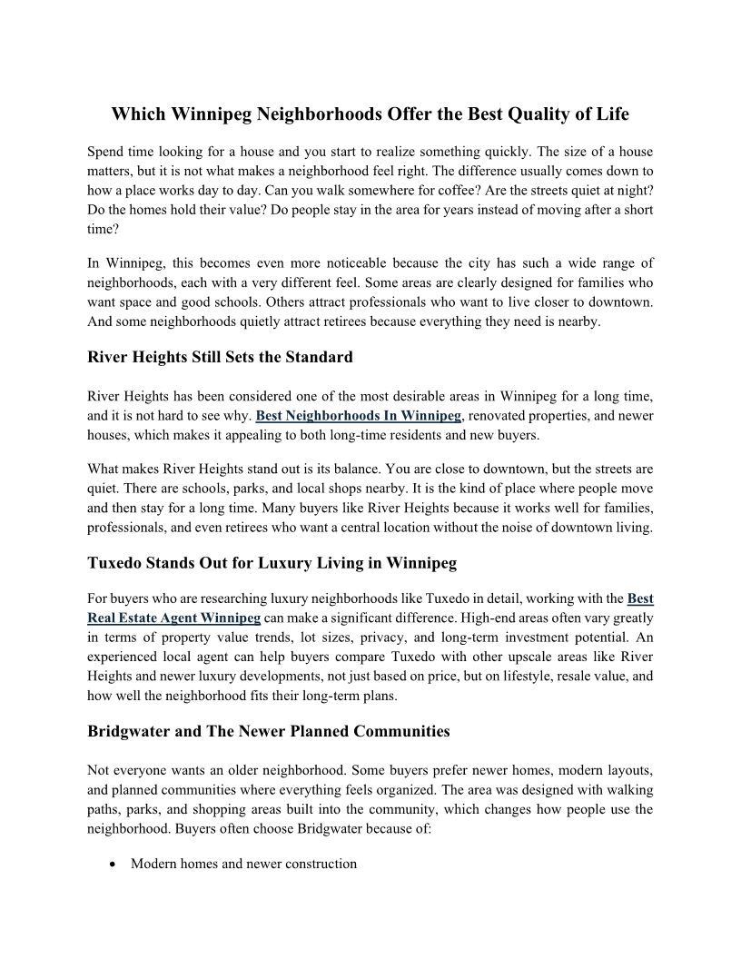 Which Winnipeg Neighborhoods Offer the Best Quality of Life