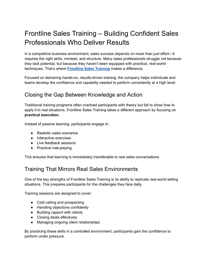 Frontline Sales Training – Building Confident Sales Professionals Who Deliver Results