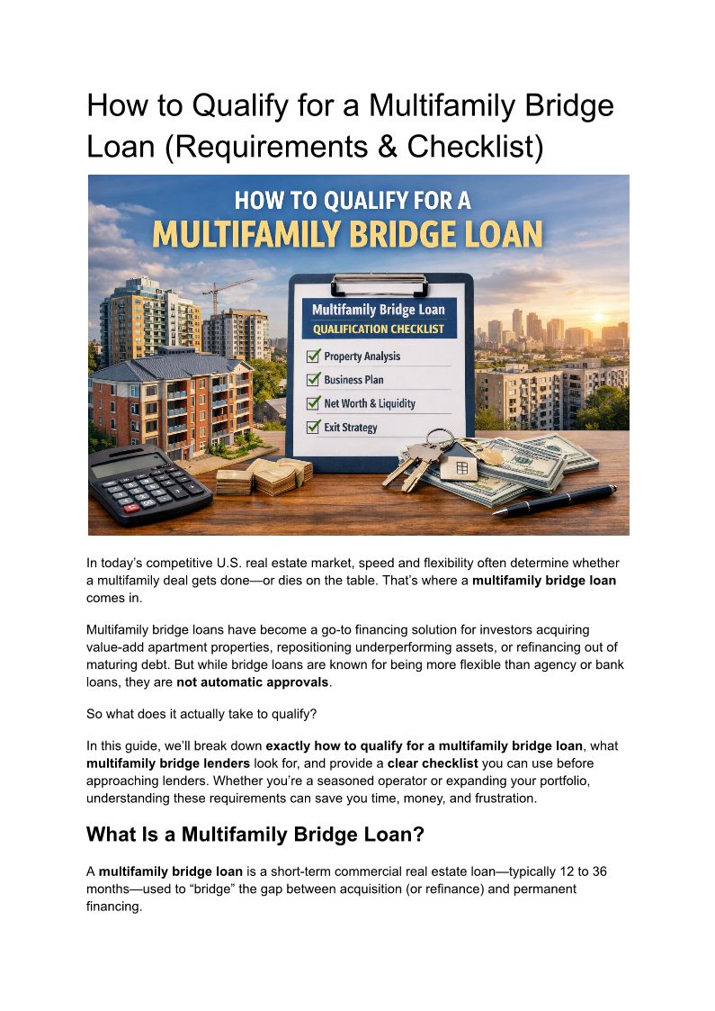 How to Qualify for a Multifamily Bridge Loan (Requirements & Checklist)