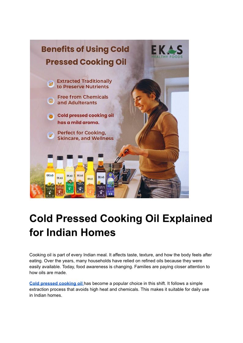 Cold Pressed Cooking Oil Explained for Indian Homes
