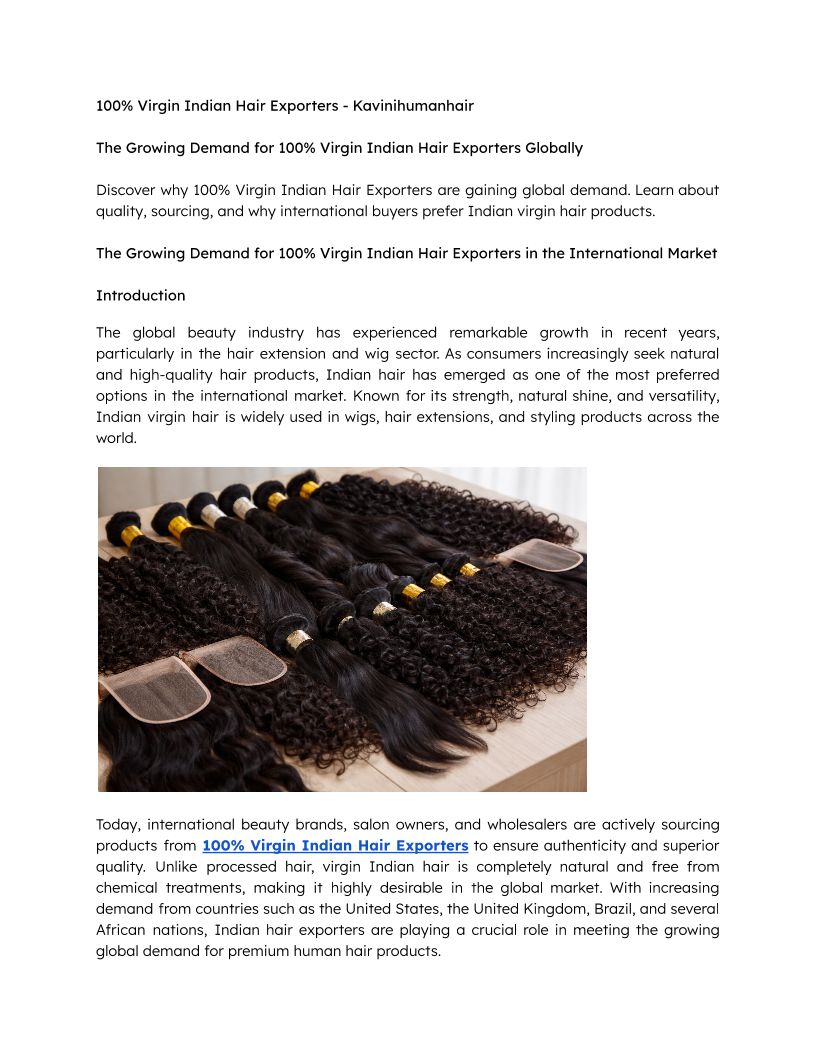 The Growing Demand for 100% Virgin Indian Hair Exporters Globally