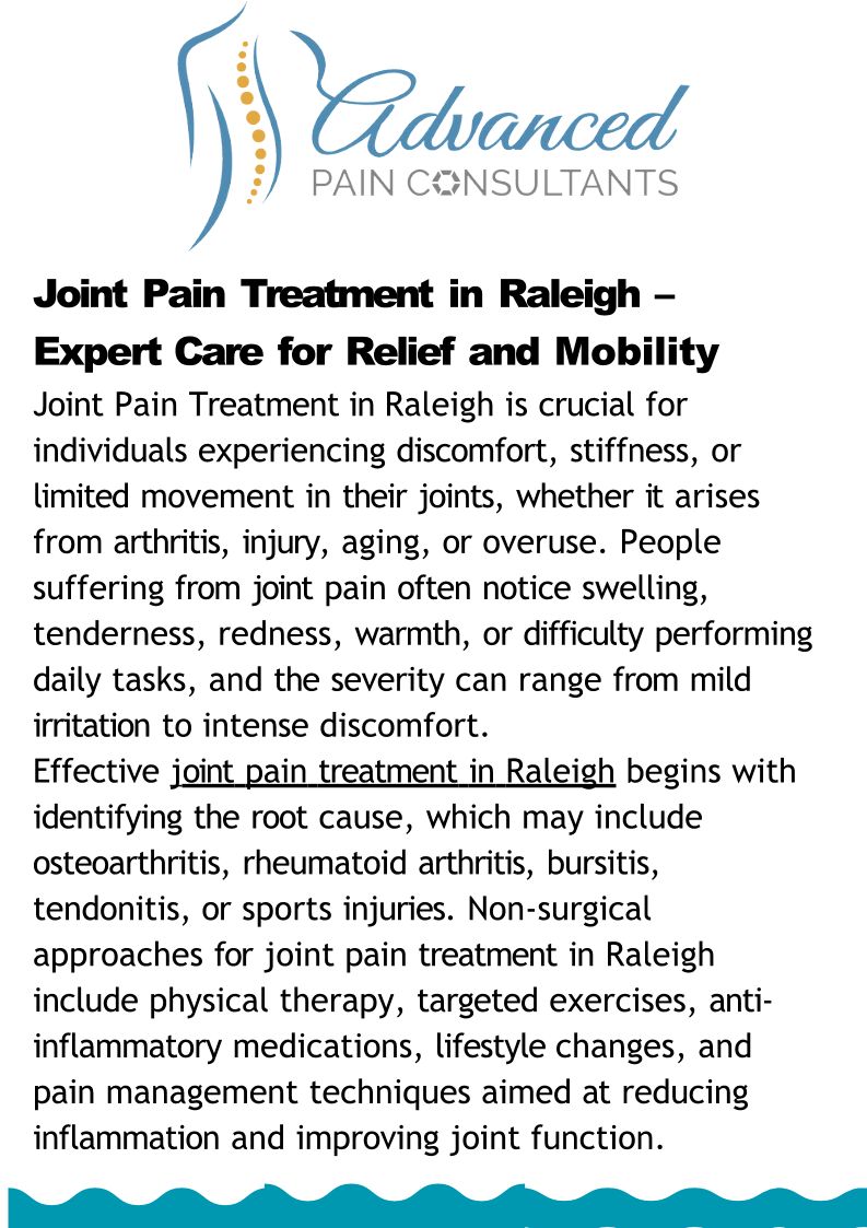 Joint Pain Treatment in Raleigh – Trusted Solutions for Better Mobility