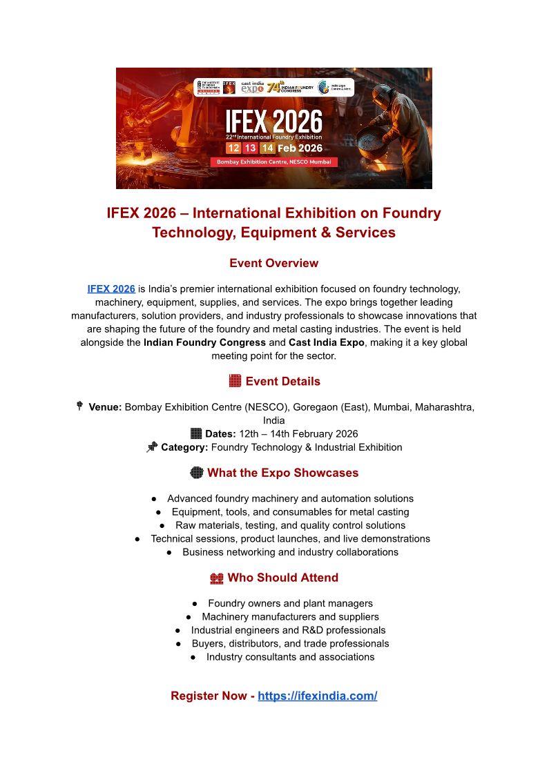 IFEX 2026 – International Exhibition on Foundry Technology, Equipment & Services