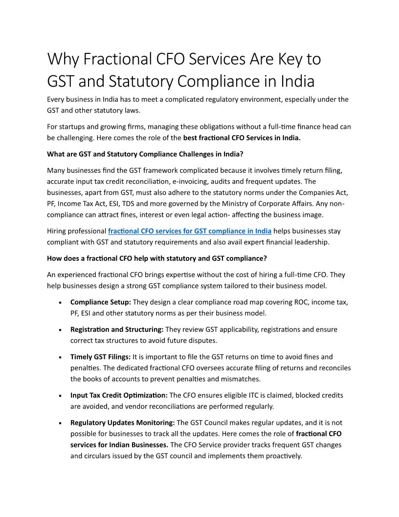 Why Fractional CFO Services Are Key to GST and Statutory Compliance in India