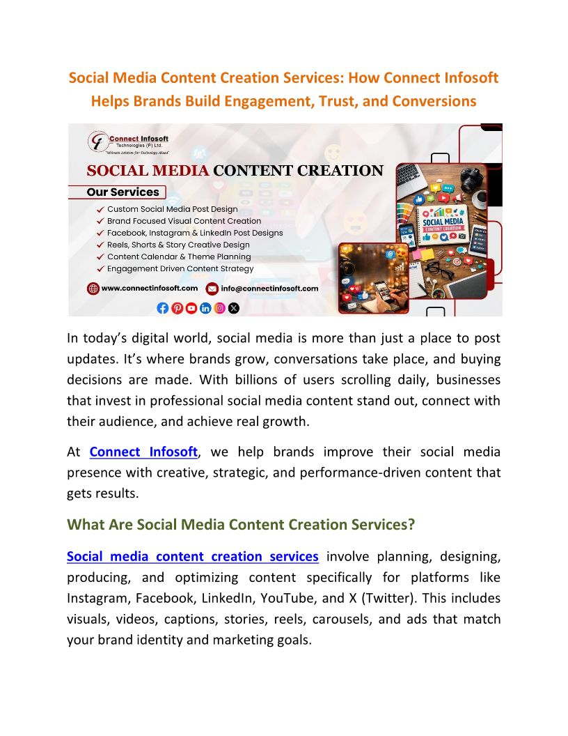 Social Media Content Creation Services: How Connect Infosoft Helps Brands Build Engagement, Trust, and Conversions
