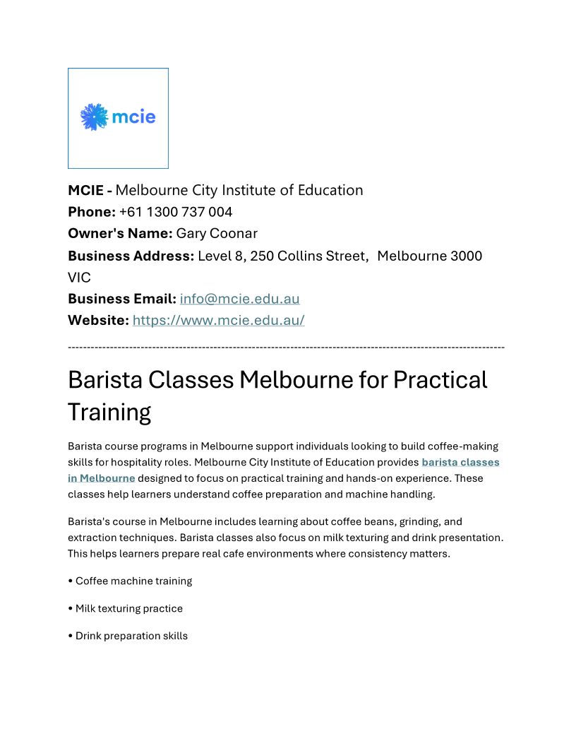 Barista Classes Melbourne for Practical Training