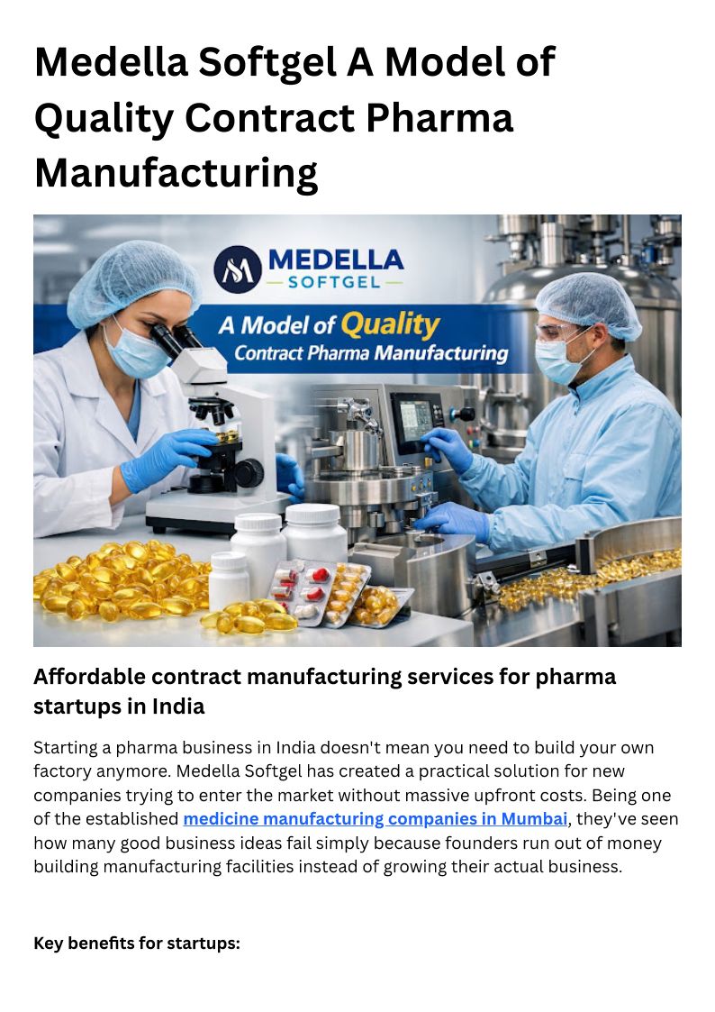 Medella Softgel A Model of Quality Contract Pharma Manufacturing