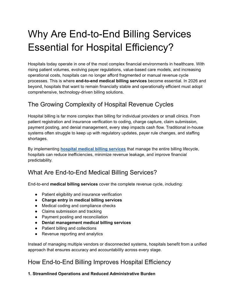 Why Are End-to-End Billing Services Essential for Hospital Efficiency