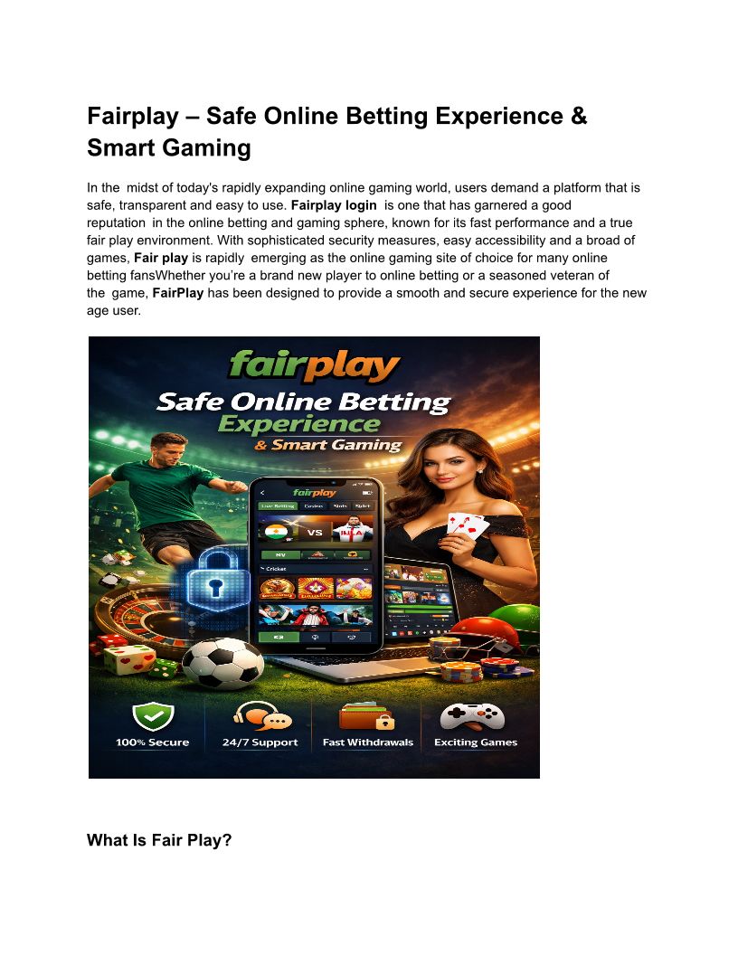 Fairplay – Safe Online Betting Experience & Smart Gaming