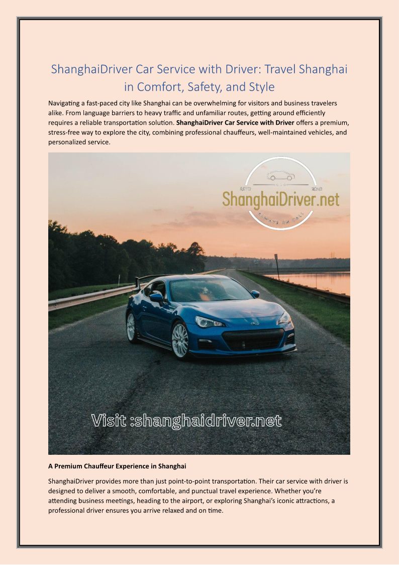 ShanghaiDriver Car Service with Driver - Travel Shanghai in Comfort, Safety, and Style