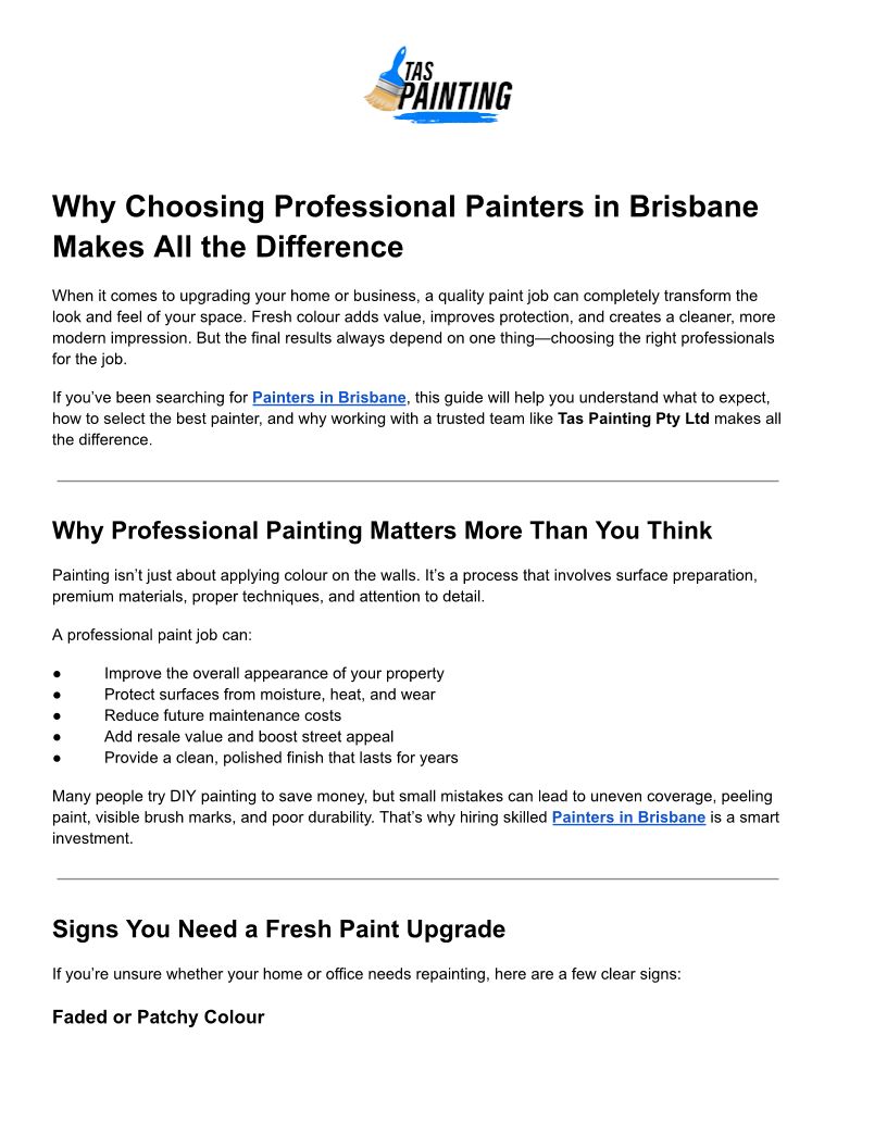 Why Choosing Professional Painters in Brisbane Makes All the Difference
