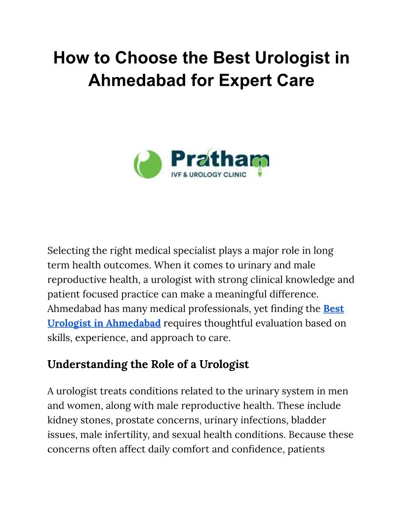 How to Choose the Best Urologist in Ahmedabad for Expert Care