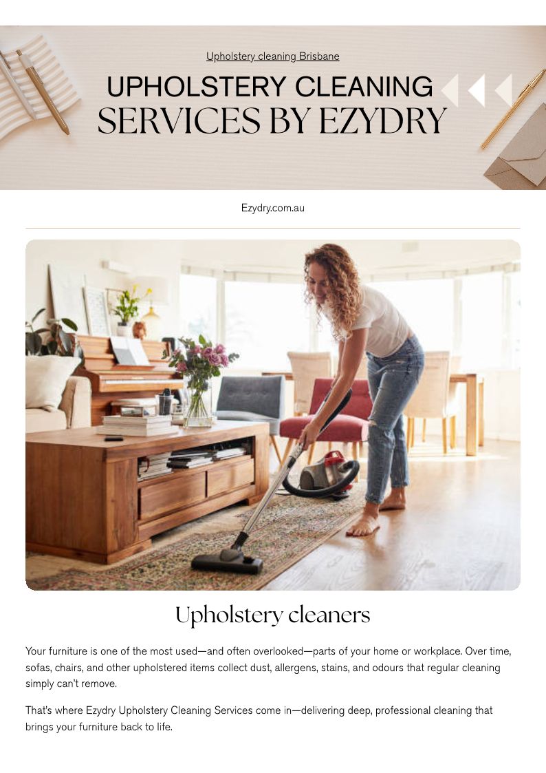 Professional Upholstery Cleaning Services by Ezydry in Brisbane