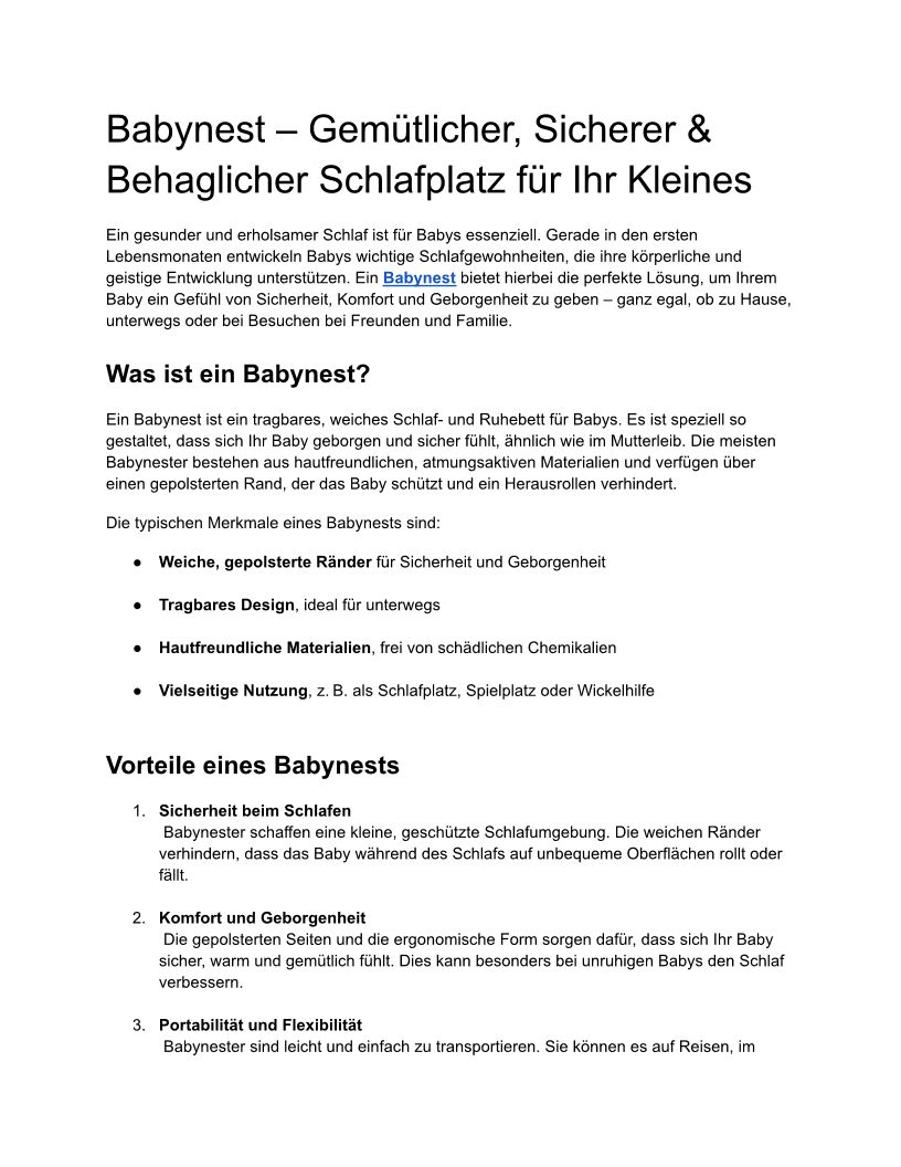 Babynest – Gemütlicher, Sicherer & Behaglicher Schlafplatz für Ihr Kleines