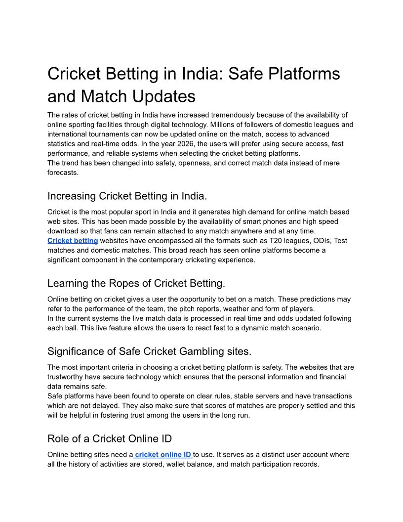 Cricket Betting in India_ Safe Platforms and Match Updates